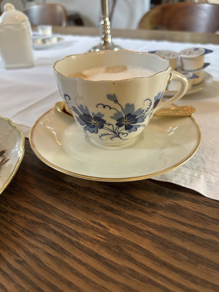 The café is housed in a beautifully restored building, showcasing a unique blend of historical charm and modern comfort. Upon entering, you’re greeted by a cozy atmosphere, enhanced by vintage furniture and an array of carefully curated decorations that speak of character and warmth. Imagine sipping your coffee amidst lovingly arranged flowers in captivating porcelain from a bygone era—each table tells a story, reminiscent of afternoons spent at your grandmother's house.